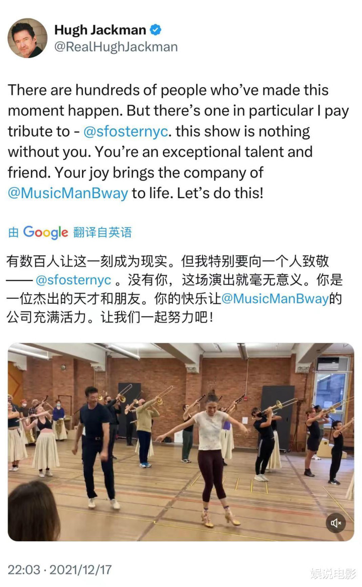 杰克曼对萨顿·福斯特的玩赏其实在2021年12月和洽上演音乐剧《容许音乐妙无尽》依然初现眉目,他大赞对方的上演,以为她是一个隆起的天才和一又友,莫得她的上演,这部音乐剧不会如斯精彩。