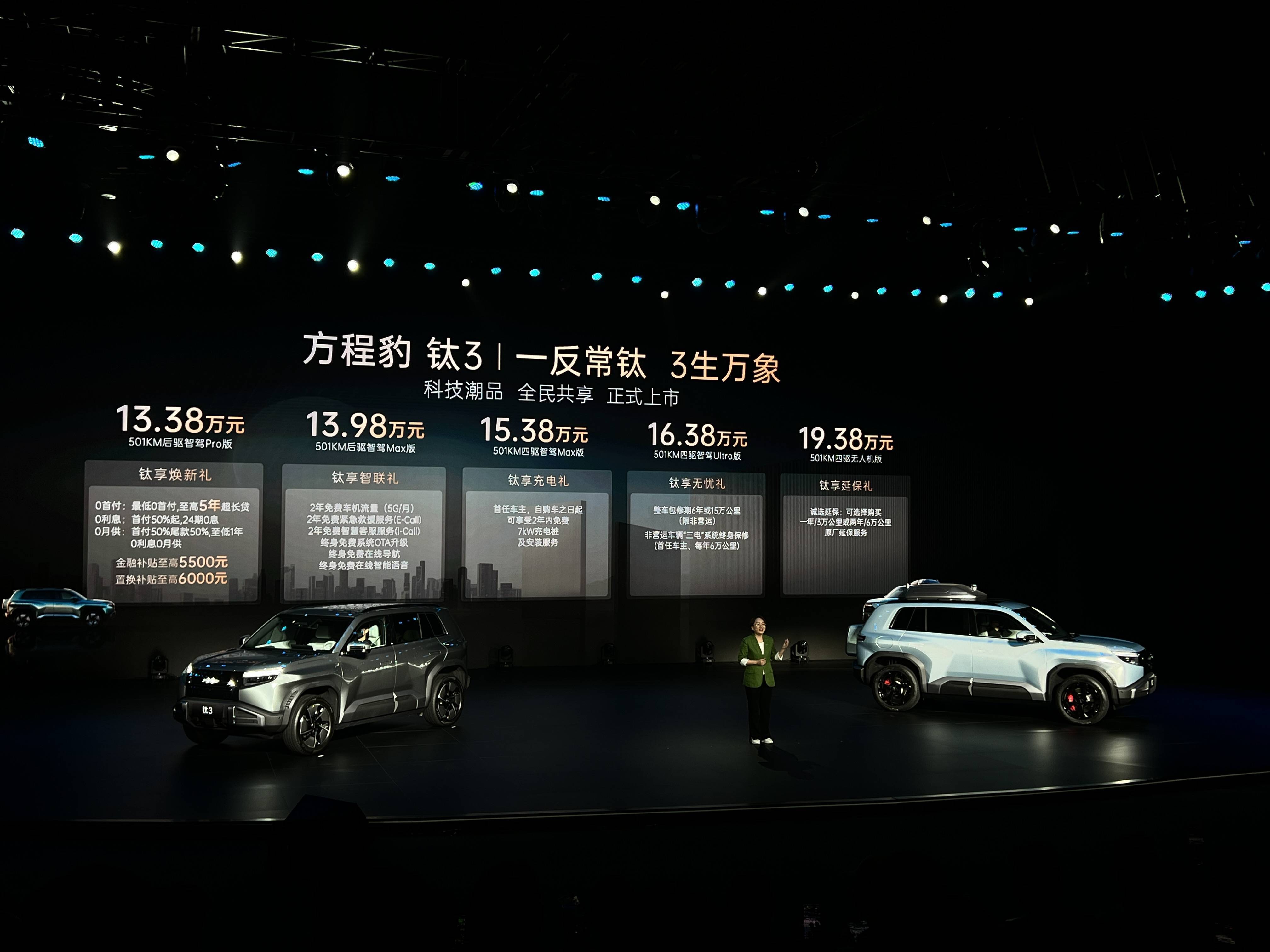 此次方程豹钛 3 一共推出 5 款设置版块,售价在 13.38 万 - 19.38 万元。这个价钱,再相接它的设置和性能来看,性价比非常高。况兼官方还给出了三重购车福利:金融贴息方面,至高有 5500 元贴息,撑执 “0 首付”(5 年超长贷)、“0 利息”(首付 50% 起,24 期 0 息)、“0 月供”(首付 50%,尾款 50%,1 年 0 息 0 月供);置换补贴,本品牌车型至高补贴 6000 元,其他品牌车型至高补贴 5000 元;干事权利上,免费赈济 7kW 充电桩,首任车主能享受 2 年基础装配干事,还有终生 OTA 升级、在线导航,2 年每月 5G 免费车机流量,非营运车辆 6 年 / 15 万公里整车质保,三电系统终生保修。这福利战术,实果真在为消耗者斟酌,缩短了购车门槛和后续使用老本。市集竞争力分析:搅局者来袭从车辆造型和定位来看,钛 3 当今还莫得稀疏奏凯的竞争敌手。不外在周边价位区间,像 iCAR V23(领导价 10.98 万元起)、smart 精灵 #3(领导价 16.49 万元起)、极氪 X(领导价 14.9 万元起)、上汽众人 ID.4 X(领导价 15.9888 万元起)等车型,可能会和它酿成竞争相干。但钛 3 凭借特有的外不雅臆测打算、越级的科技设置,像车载无东说念主机系统、模块化改装,还有标配的高阶智驾功能,以及出色的能源性能和塌实的续航,在这个价位区间里,互异化上风仍是很较着的。它把智能驾驶、高性能三电、模块化改装这些往时在高端车上才有的设置,带到了主流市集,让更多消耗者卤莽体验到这些先进时代和个性化功能。家东说念主们,方程豹钛 3 这一上市,奏凯就给 15 万级 SUV 市集带来了新的活力和竞争压力。特有的外不雅、丰富的设置、强劲的能源,还有忠心满满的价钱和福利,你们认为这款车怎么样?是你的菜吗?接待在评述区留言商议。