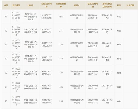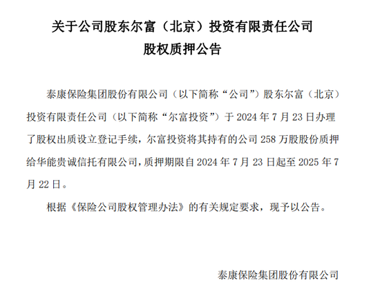 最新的为本年7月份,尔富(北京)投资有限累赘公司将258万股股份质押给华能贵诚信赖,质押期限自2024年7月23日起至2025年7月22日。