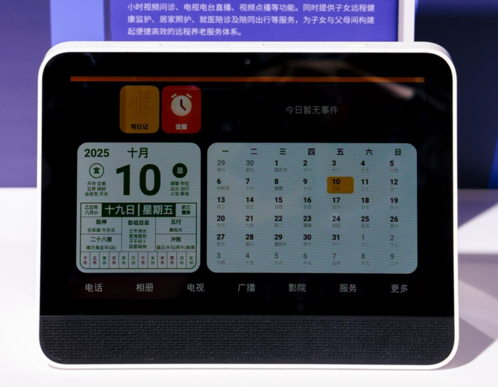 眩惑许多参展者现场体验的小蓝船居家养老智谋中屏,是一款由中国移动结尾公司推出的智谋养老居品,一样亦然由骁龙移动平台驱动,通过 10 寸智谋中屏,集成适老化交互系统、24 小时视频问诊、电视电台直播、视频点播等功能。同期提供子女费事健康监护、居家照护、就医陪诊及奉陪出行等就业,为子女与父母间构建起通俗高效的费事养老就业体系。